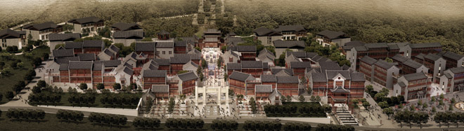 环翠楼公园位于威海市城市的心脏地带,伴随着城市的发展进程而不断的扩大丰富,它是整个威海市历史文化的记忆与见证;威高民俗文化邨项目地处环翠楼公园西部,古寨南路东侧;景观环境优越。在整个环翠楼公园中,未来山顶上会建立新的观海平台,作为中心建筑之一,民俗风情街区应与公园环境相呼应,采用对景的方式,将民俗文化邨主轴线与山顶建筑建立视觉对景景观。民俗文化村基地主轴线与环翠楼公园制高点----电视塔采用对景关系,有效地实现了两者之间重要的视线通廊和两地块高差的自然衔接。建筑风格上民俗文化邨出发点立足于还原地域传统历史建筑的风貌、立足于形成高档的商业场、立足于发展民俗旅游文化。