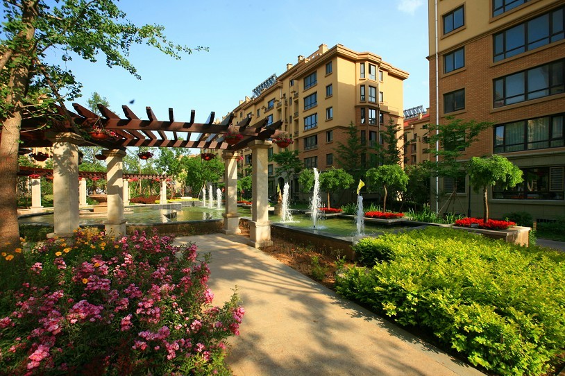 会所前的中心水景区更是威海少有的大面积人工泉瀑湖景,自由曲线的层层跌水将湖面分割成如同云南元阳梯田、四川黄龙五彩池般的景观效果,这是威高花园延请的中国著名的园林景观设计团队所做的神来之笔,不但为整个威高花园所要营造的“公园生活”做了精彩阐述,更将成为威海未来的特色休闲公园之最。